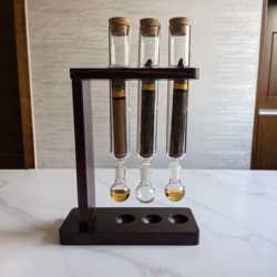 3シガーシガーフレーバーインジェクター加湿器ウイスキー幼児用ヒュミドールガラスシガーチューブディスプレイビンテージウッドベース付き
