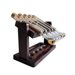 หลอดแก้วซิการ์2หลอดสำหรับใส่ซิการ์ตกแต่งเลานจ์ที่ใส่ที่แช่เหล้าวิสกี้พร้อมฐานไม้
