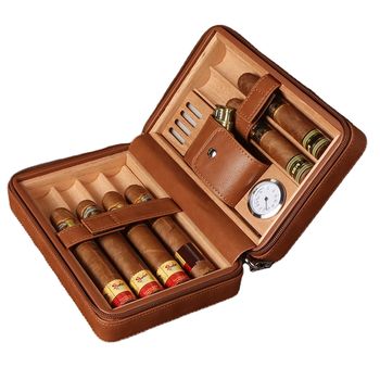 6 סיגרים עור מפואר תיק רוכסן נסיעות סיגר שקית רוכסן נסיעות סיגר עץ סיגר עץ ארז הומידור עם hydrometer ו humidifier